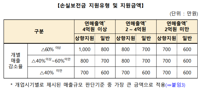 - 방역조치대상 중기업 : 700만원 ~ 1,000만원