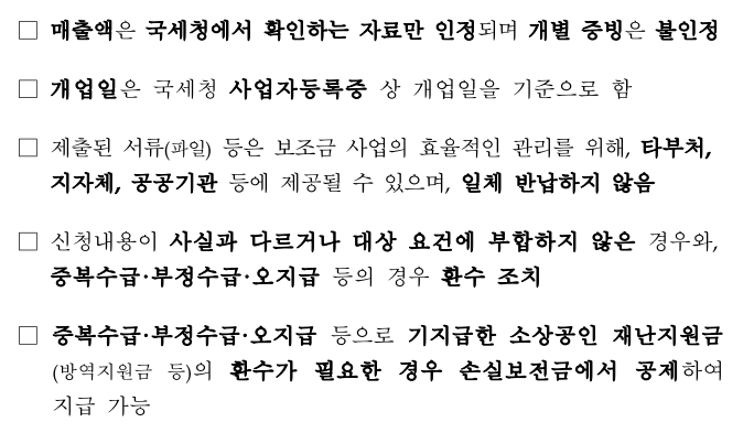 □ 중복수급·부정수급·오지급 등으로 기지급한 소상공인 재난지원금(방역지원금 등)의 환수가 필요한 경우 손실보전금에서 공제하여지급 가능